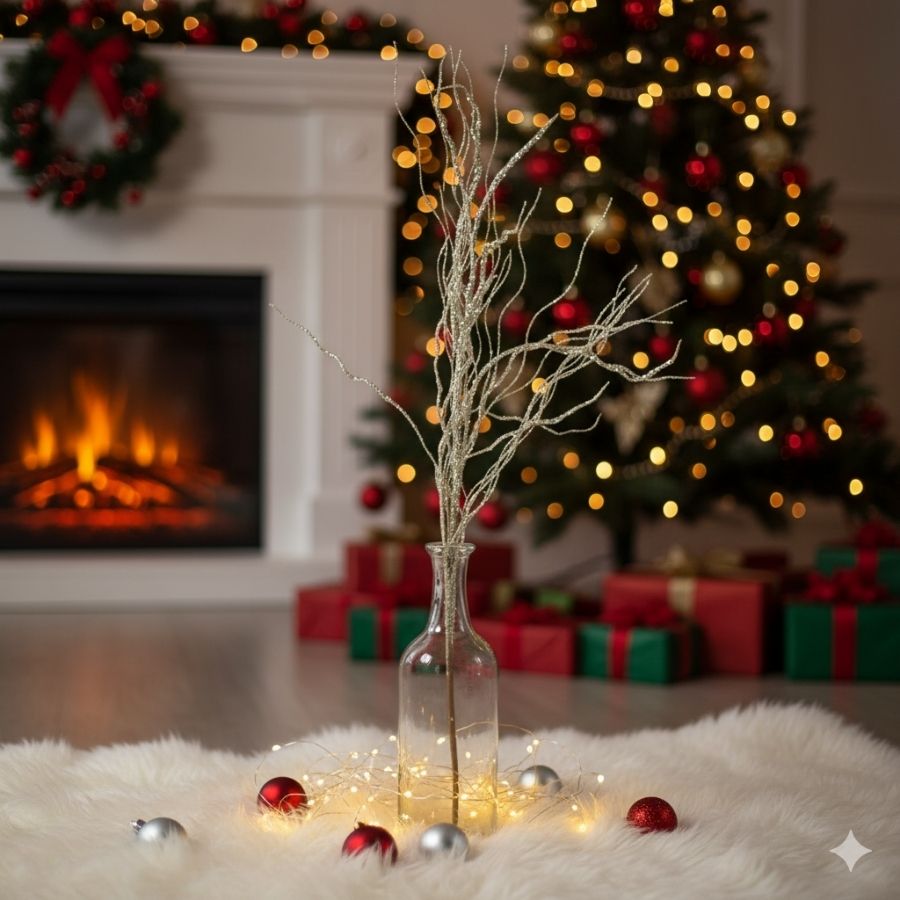 O Galho Decorativo Com Glitter - Champagne - 90x38x38cm é elegante, versátil e brilhante, ideal para guirlandas, árvores e arranjos natalinos sofisticados.