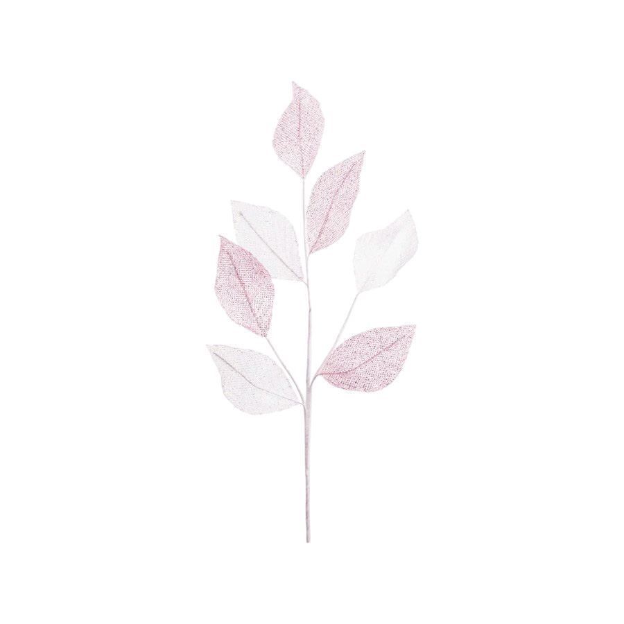 Decoração de galhos grandes com folhas artificiais em tons de branco e rosa, adornadas com glitter para um brilho delicado e sofisticado. Ideal para compor arranjos festivos e enfeites natalinos, ou para trazer um toque elegante de cor e luminosidade a decorações de interiores.