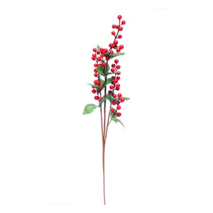 Galho decorativo com folhas e frutas, na cor vermelha e verde. Este galho mede 80 cm. Perfeito para arranjos natalinos, decoração de mesa e outro enfeites de Natal.