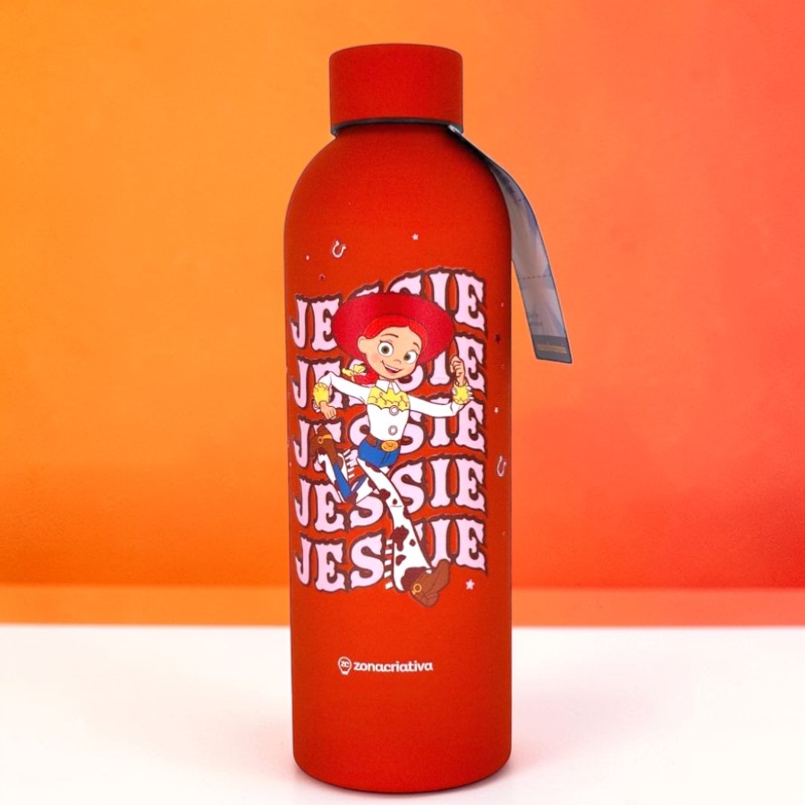 Garrafa em aço inoxidável e tampa de rosquear, inspirada em Jessie Toy Story Pixar