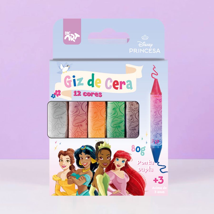 O Giz de Cera Ponta Dupla – Princesas Disney é um Produto Licenciado Disney perfeito para pequenos artistas que desejam explorar a criatividade de maneira divertida e prática. Com 12 cores vibrantes e ponta dupla, permite alternar facilmente entre cores diferentes, criando combinações, efeitos e desenhos únicos. Inspirado no universo encantador das Princesas Disney, o giz de cera ponta dupla transforma o momento de colorir em uma experiência lúdica e envolvente, ideal para atividades escolares ou para soltar a imaginação em casa.