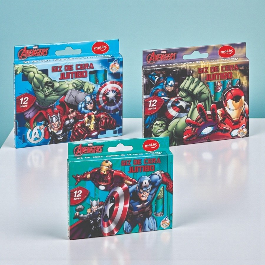 Giz de cera modelo jumbo com 12 cores, inspirado em Vingadores Marvel