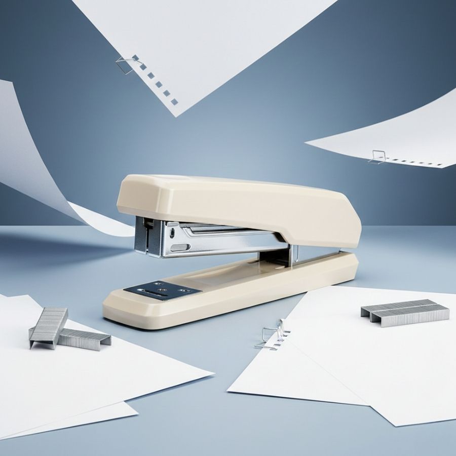 O Grampeador com Extrator de Grampos grampeia até 25 folhas com firmeza e permite remover grampos com facilidade, sendo compacto, resistente e ideal para organizar documentos em ambientes escolares ou profissionais.