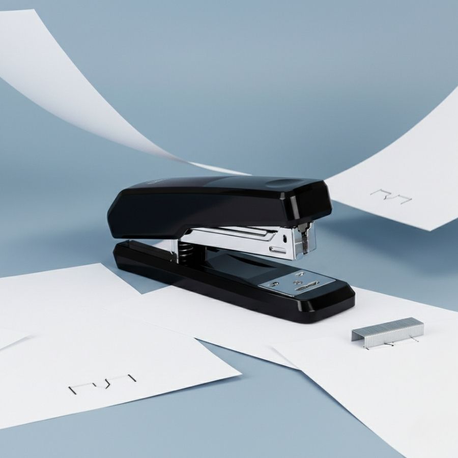 O Grampeador com Extrator de Grampos grampeia até 25 folhas e permite remover grampos com facilidade, sendo compacto, resistente e ideal para organização de documentos no ambiente escolar ou profissional.