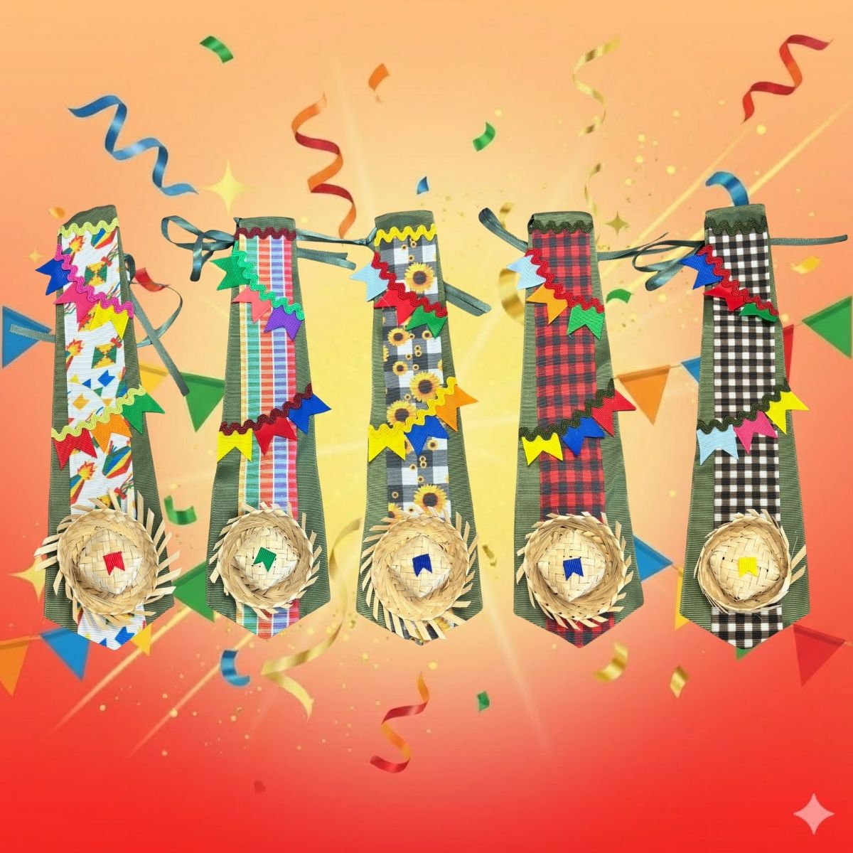 A Gravata de Festa Junina verde sortida é um acessório prático e temático para quem busca variedade e surpresa na decoração ou no visual de São João. Mantendo o estilo caipira tradicional, ela é ideal para festas grandes, escolas, quadrilhas e eventos juninos.