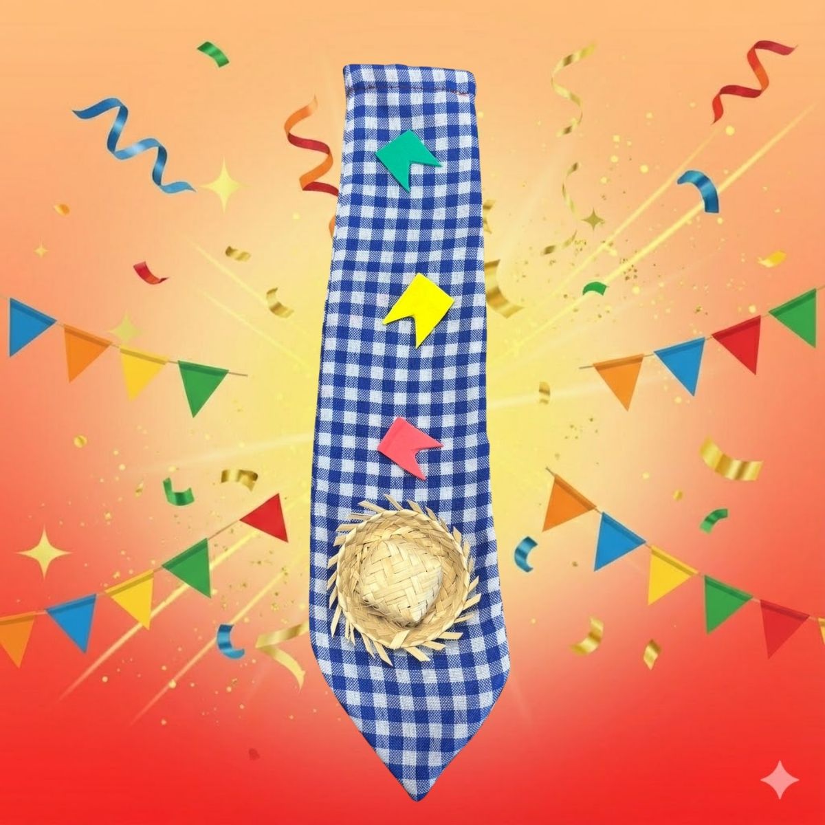 Use a gravata de festa junina para complementar fantasias caipiras ou looks temáticos em festas e eventos escolares. Combine com camisa xadrez, chapéu de palha, remendos e outros elementos juninos para uma composição completa. Também pode ser usada como acessório decorativo em brincadeiras e apresentações.