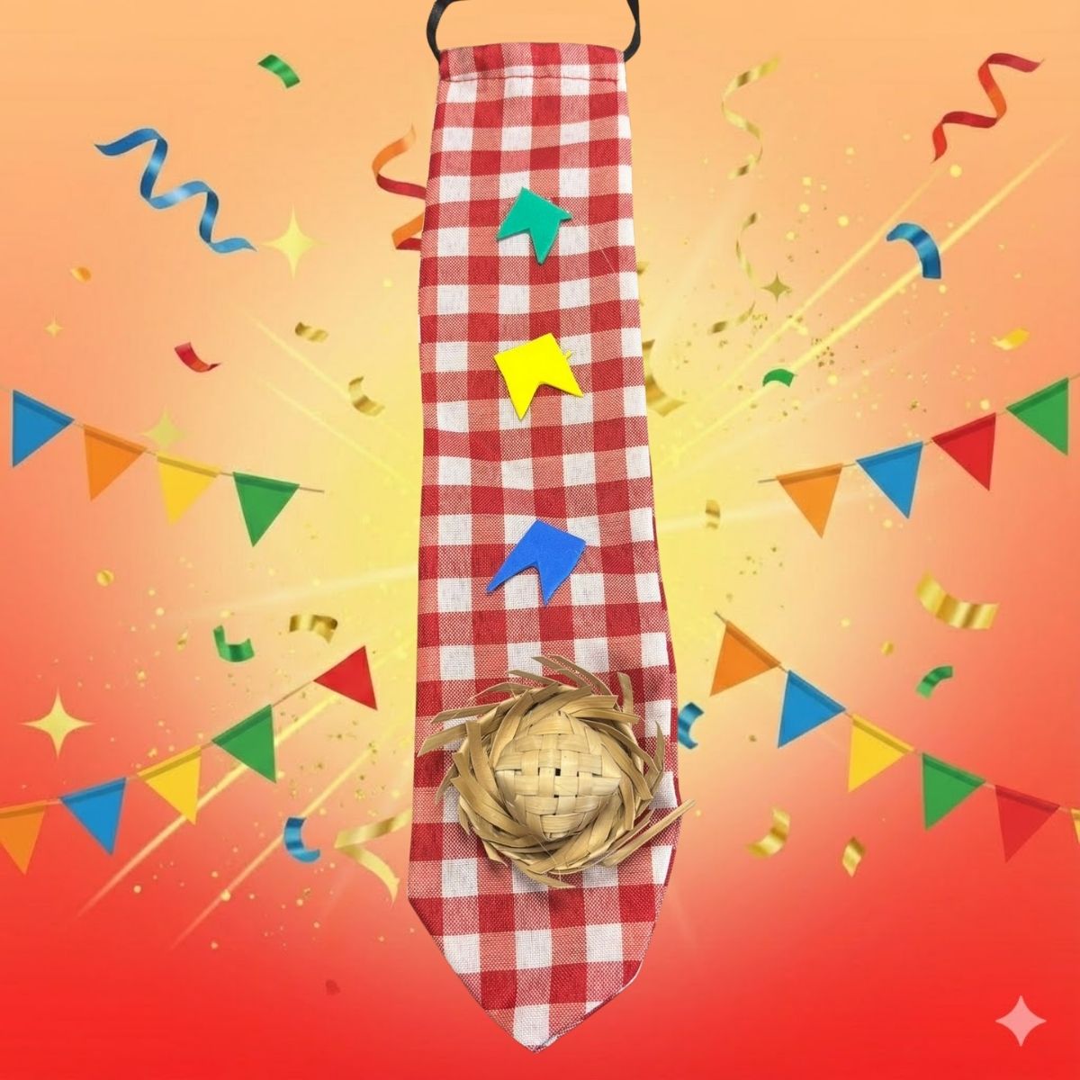 Use a gravata de festa junina para complementar fantasias caipiras ou looks temáticos em festas e eventos escolares. Combine com camisa xadrez, chapéu de palha, remendos e outros elementos juninos para uma composição completa. Também pode ser utilizada como acessório em apresentações e brincadeiras típicas.