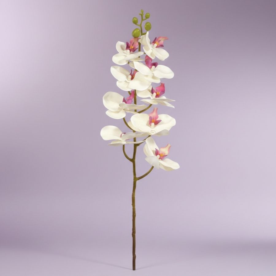 Haste permanente de Orquídea Phalaenopsis creme, ideal para decoração elegante, arranjos sofisticados e composições florais realistas.