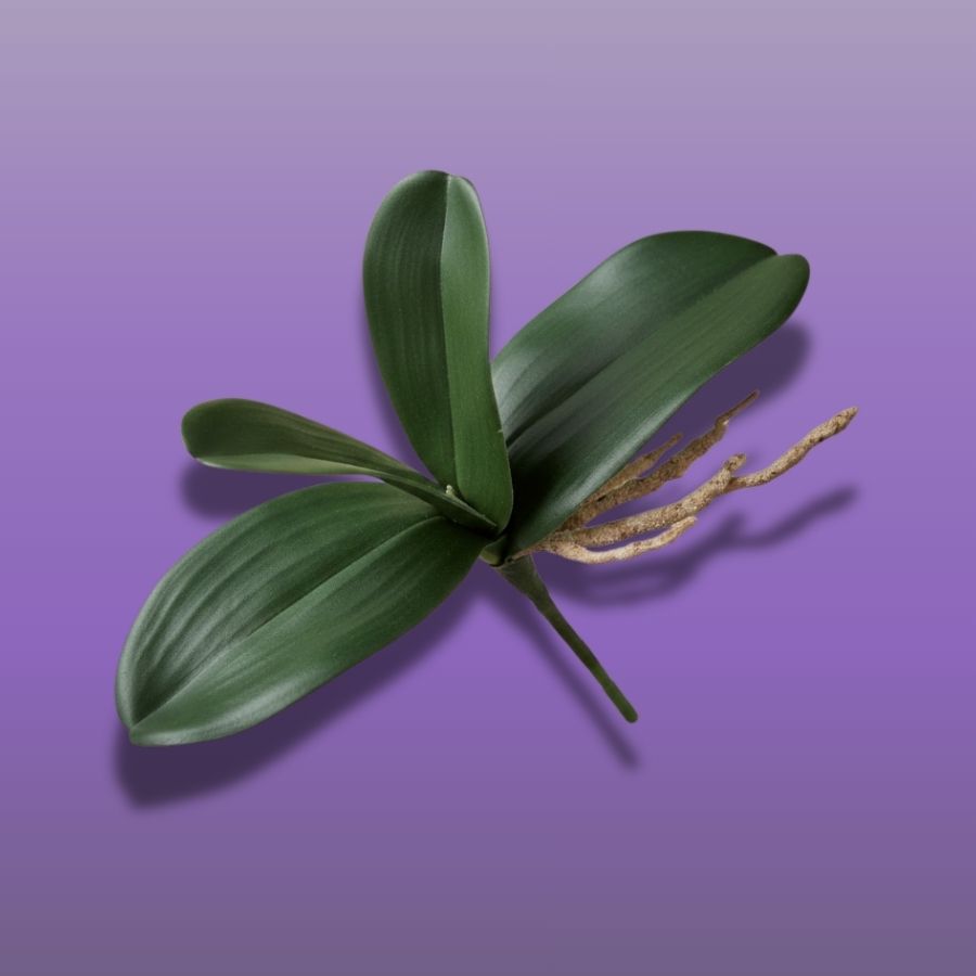 Haste de folha permanente de orquídea Phalaenopsis com raiz, ideal para composições sofisticadas, decoração elegante e projetos que exigem realismo e praticidade.