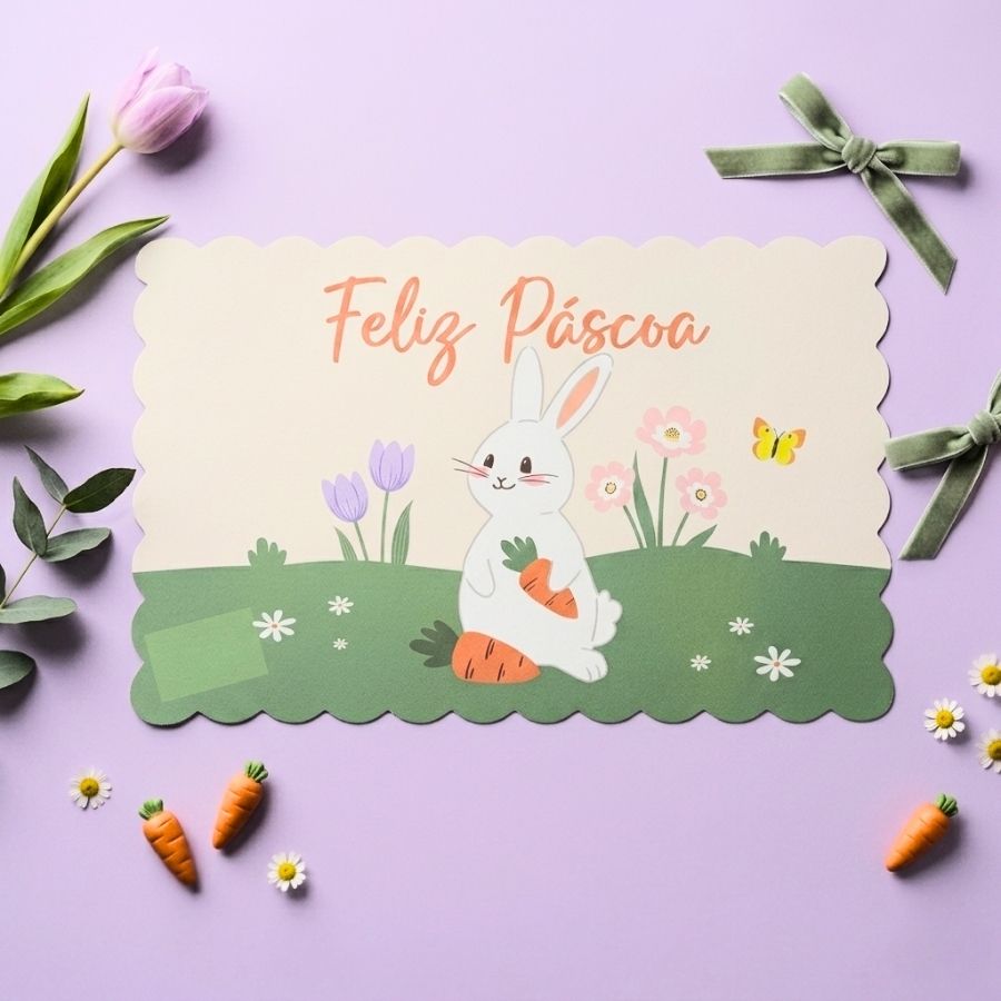 O jogo americano com tema de páscoa é a escolha perfeita para transformar sua mesa posta de páscoa em um cenário encantador e acolhedor. Produzido com material resistente e de fácil limpeza, ele une decoração de páscoa, praticidade e durabilidade. Com estampas delicadas de coelhinhos, ovos coloridos e elementos temáticos, é ideal para quem busca um toque especial na decoração de mesa sem abrir mão da funcionalidade. Além de proteger a superfície contra manchas e riscos, valoriza a apresentação dos pratos e cria uma composição harmoniosa.