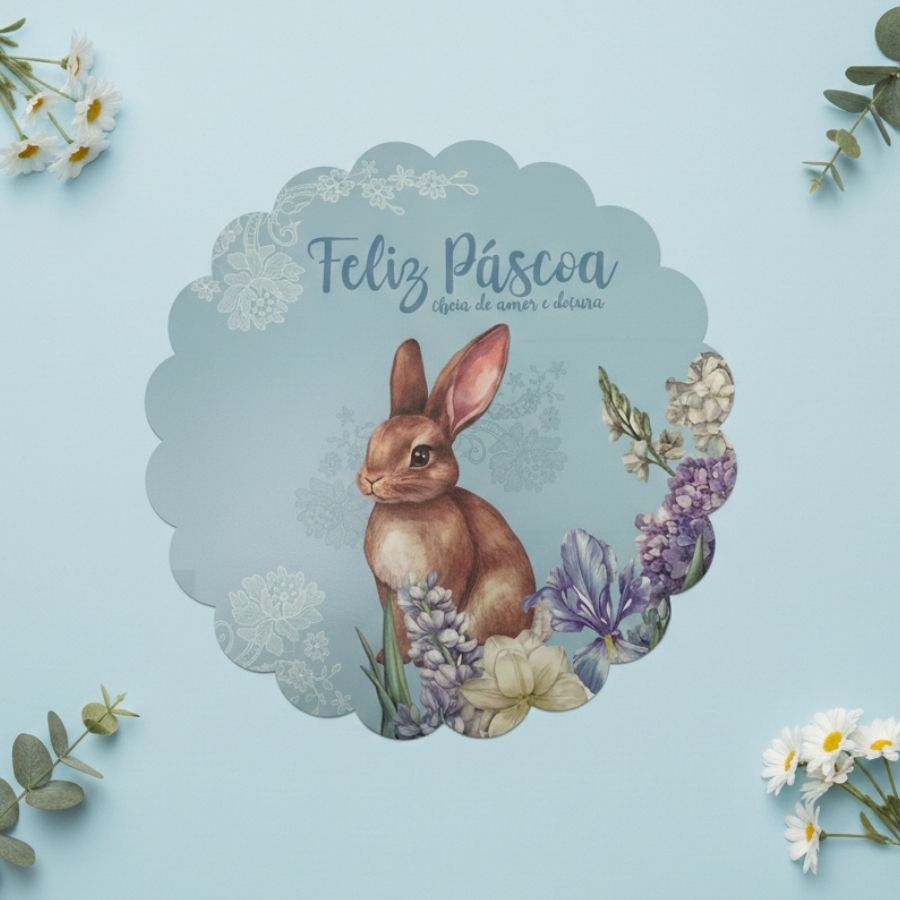 O Jogo Americano de Páscoa é um item decorativo e funcional, ideal para enriquecer a decoração de mesas temáticas durante a celebração da Páscoa. Confeccionado em tecido de alta qualidade, na cor azul, com 38 cm de diâmetro, apresenta delicado bordado de coelho com flores acompanhado da frase "Feliz Páscoa Cheia de Amor e Doçura". Desenvolvido para oferecer resistência, praticidade e excelente acabamento, é perfeito para artesãos, lojistas e pequenos produtores que desejam criar mesas encantadoras, acolhedoras e visualmente harmoniosas.