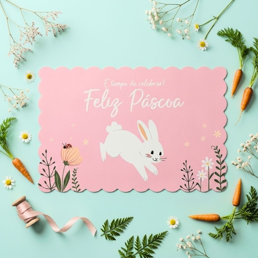 O jogo americano com tema de páscoa é a escolha perfeita para transformar sua mesa posta de páscoa em um cenário encantador e acolhedor. Produzido com material resistente e de fácil limpeza, ele une decoração de páscoa, praticidade e durabilidade. Com estampas delicadas de coelhinhos, ovos coloridos e elementos temáticos, é ideal para quem busca um toque especial na decoração de mesa sem abrir mão da funcionalidade. Além de proteger a superfície contra manchas e riscos, valoriza a apresentação dos pratos e cria uma composição harmoniosa.