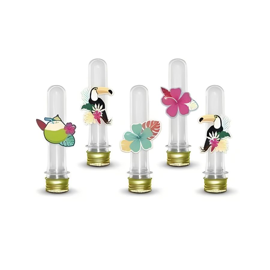 O Kit Aplique Festa Tropical Tucano 5x5cm é prático, divertido e ideal para personalizar lembrancinhas, doces e decorações de festas infantis temáticas.