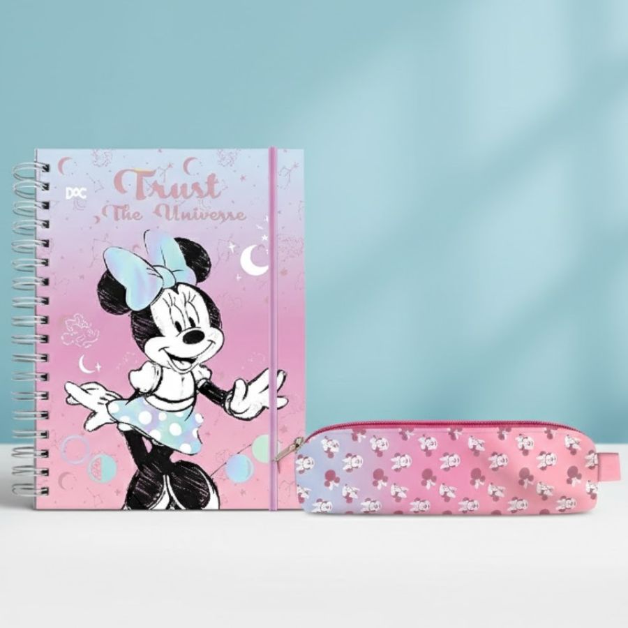 O Kit Caderno Smart e Estojo Minnie Mouse Disney na versão Minnie Mouse Disney Rosa é perfeito para quem busca organização com um visual delicado e criativo. A Caixa Criativa Dac acompanha um Caderno Smart Minnie Mouse Disney no formato colegial e um estojo com elástico, formando um conjunto prático para o dia a dia escolar, cursinhos ou uso pessoal. O caderno permite remover, adicionar e reorganizar as folhas reposicionáveis de forma simples, facilitando a organização por matérias ou temas. As folhas coloridas e as divisórias decoradas tornam a rotina mais leve e funcional, enquanto o acabamento com detalhes em hot stamping na capa destaca o estilo da Minnie Mouse Disney. Item disponível na Loja Disney Rizzo como Produto Licenciado Disney.