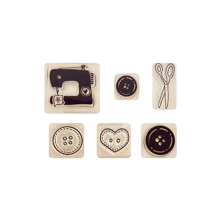 O Kit Cartela de Carimbos - Máquina de Costurar M é ideal para quem ama o mundo da costura criativa e do artesanato. Cada carimbo traz traços delicados e temas inspirados em ateliers, como linhas, agulhas, botões e a charmosa máquina de costura. Produzido com material de alta qualidade, garante estampas precisas e duradouras, perfeitas para dar um toque especial aos seus projetos manuais.