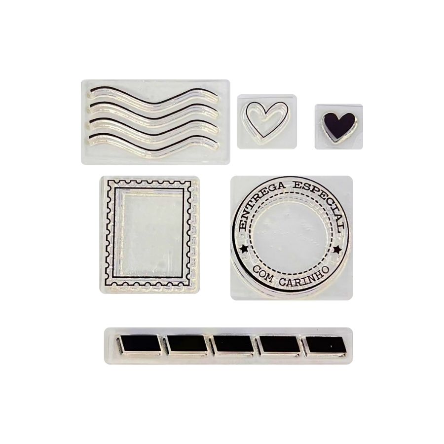O Kit Cartela de Carimbos - Selos é um conjunto encantador que traz o charme e a nostalgia dos selos postais para suas criações artesanais. Com desenhos inspirados em selos vintage, carimbos de viagem, marcas postais e elementos decorativos, este kit é perfeito para quem ama personalizar papéis, cartões e embalagens com um toque retrô e elegante.