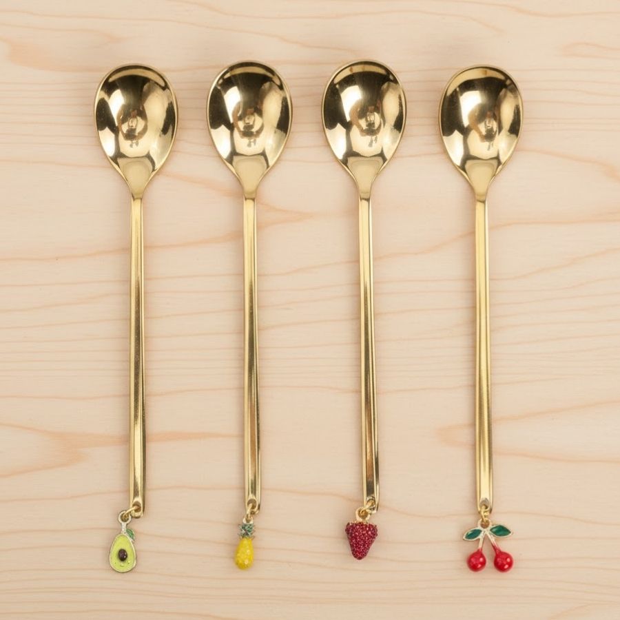 O kit de colheres para aperitivos é um item delicado e cheio de charme, perfeito para compor mesas elegantes e criativas. Produzidas em aço inox com acabamento dourado, as colheres apresentam um visual sofisticado e decorativo. Cada peça possui um detalhe de pingente de fruta, trazendo um toque lúdico e refinado que valoriza a apresentação de petiscos e pequenas porções.