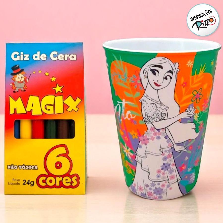 Kit Copo para Colorir e Giz de Cera - Encanto Isabela - 1 unidade - Rizzo