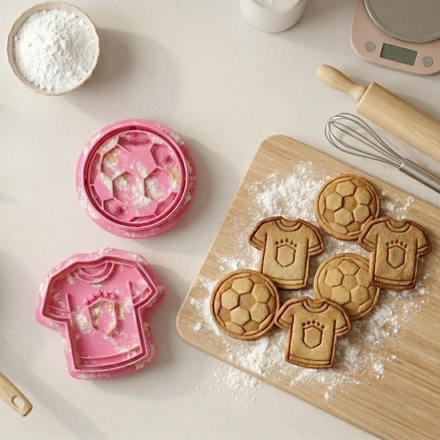 Kit de cortador e carimbo para confeitaria com camisa e bola de futebol