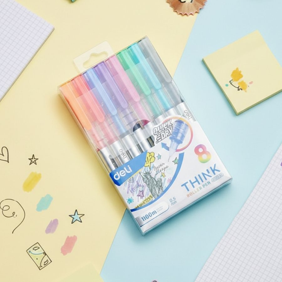 O Kit de Canetas Roller Pens com 8 cores é ideal para quem busca escrita suave, precisão e variedade no dia a dia. Com ponta agulha 0,5mm, proporciona traço fino, contínuo e bem definido, sendo perfeita para anotações detalhadas, estudos, escrita técnica, bullet journal e organização por cores. A experiência de escrita é confortável e fluida, reduzindo o cansaço mesmo em usos prolongados.