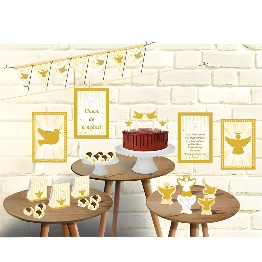 O Kit Festa Benção é a solução completa para criar decorações delicadas, alegres e memoráveis em celebrações religiosas, batizados ou festas com temática de bênção. Com ele, é possível montar um cenário harmonioso e elegante, perfeito para tornar cada momento da comemoração ainda mais especial e registrar lembranças inesquecíveis de forma prática e organizada.