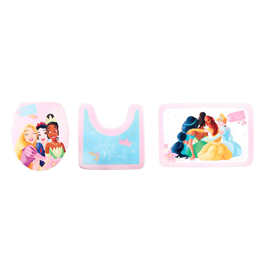 Kit para banheiro com 1 tapete, 1 tapete para vaso e 1 capa para assento das princesas da Disney