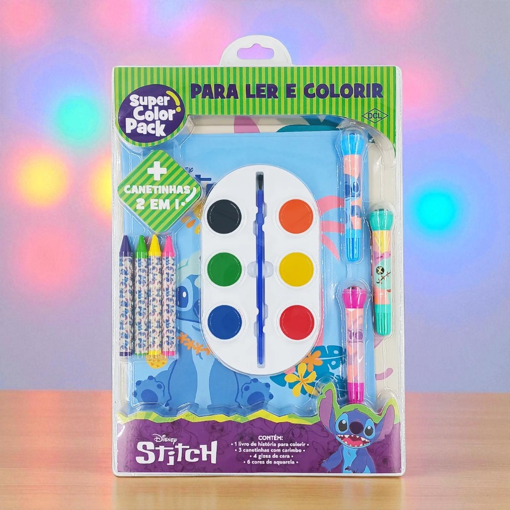 Este kit colorir Stitch Disney vem em embalagem modelo blister, ideal para presentear ou usar como lembrancinha em festas temáticas. Produto Original Disney, é perfeito para sonhar, realizar e comemorar com o encanto do universo Stitch.