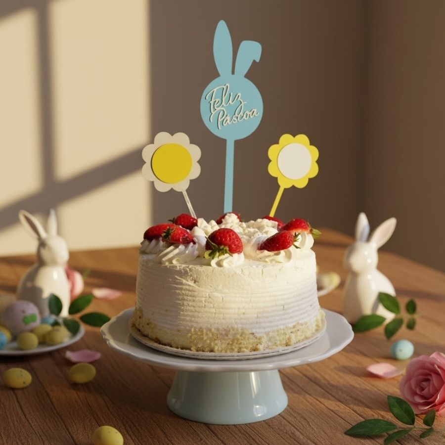 Perfeito para bolos temáticos, mesas de doces e festas de Páscoa, o topo de bolo une praticidade e charme, valorizando suas criações artesanais. O acabamento brilhante do acrílico azul garante um toque moderno e elegante, ideal para quem busca um item decorativo durável e reutilizável.