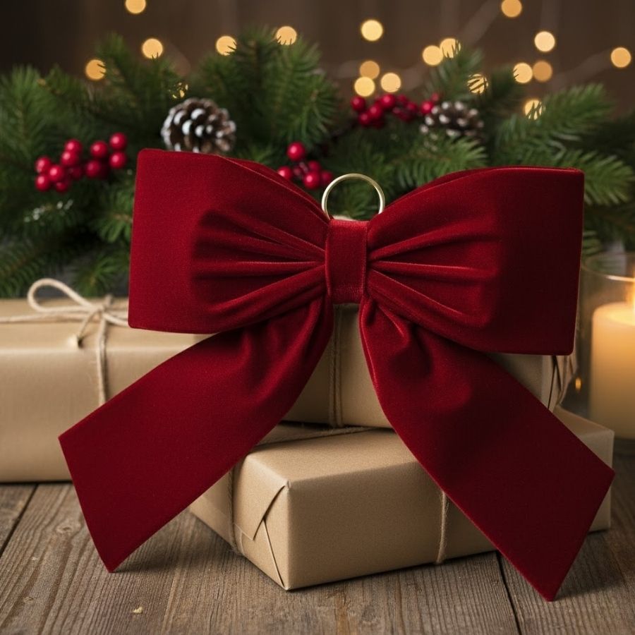 O Laço de Veludo Vermelho G - 31x39x7cm é o enfeite perfeito para adicionar um toque clássico e elegante à sua decoração de Natal. Produzido em veludo macio de alta qualidade, ele possui acabamento aveludado e brilho suave que remetem ao charme e à tradição natalina. Seu tamanho generoso o torna ideal para portas, guirlandas, árvores grandes e embalagens especiais.