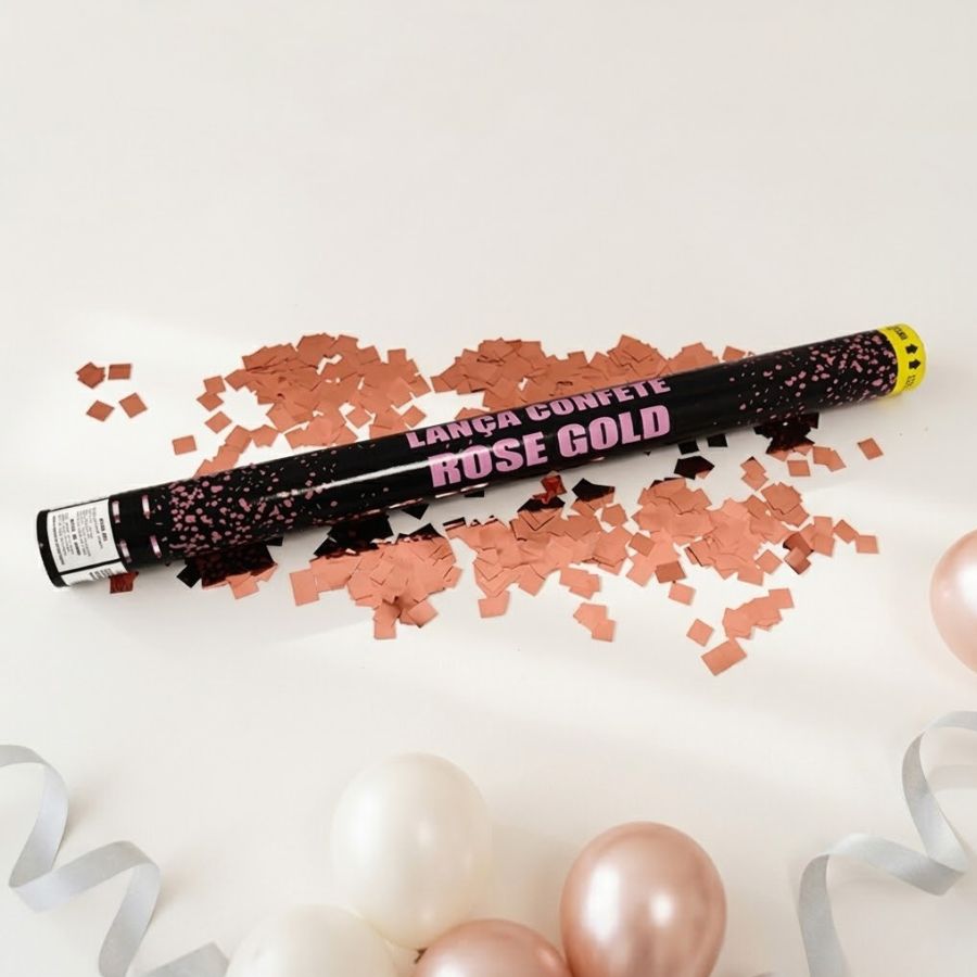 Lança confete de 60 cm com confetes rose gold metálico