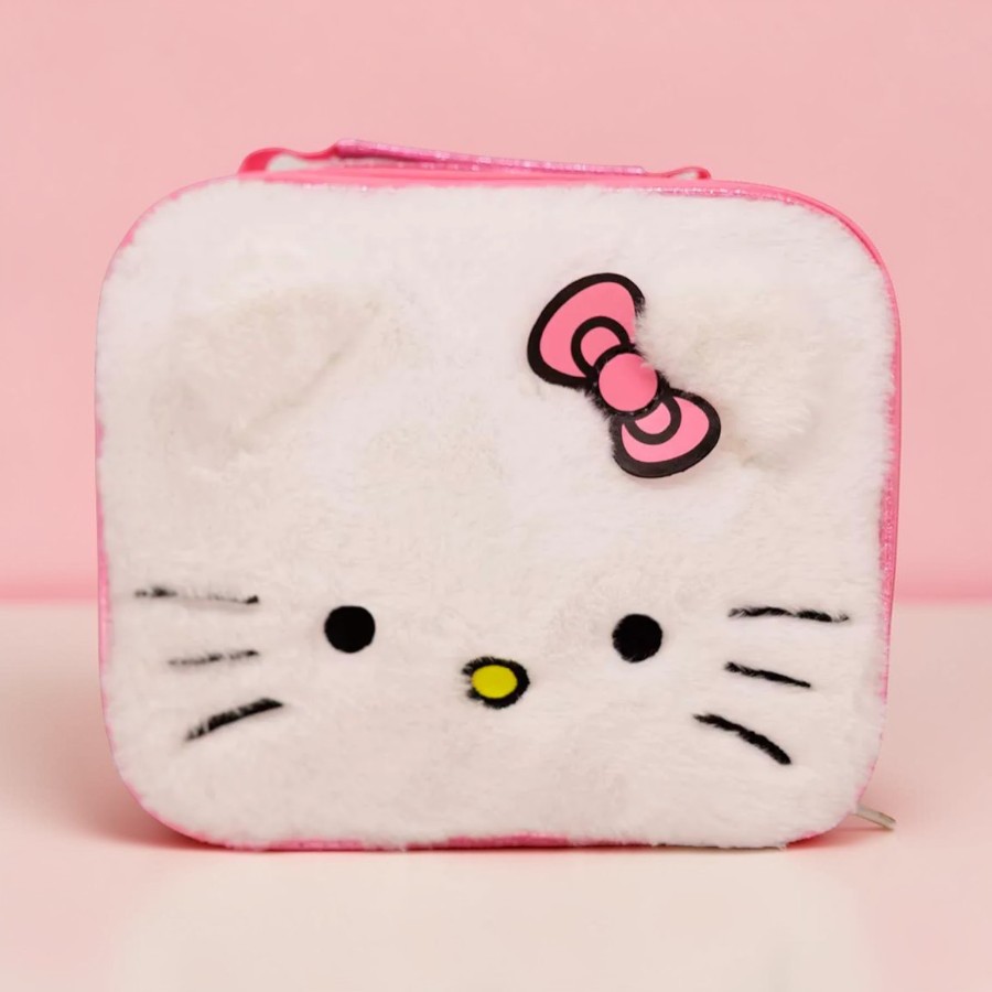 Lancheira térmica peluciada inspirada em Hello Kitty. Produto Licenciado.
