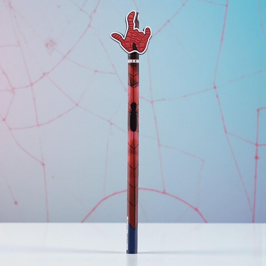 Lapis hb preto com aplique de encaixe inspirado em Homem Aranha Marvel