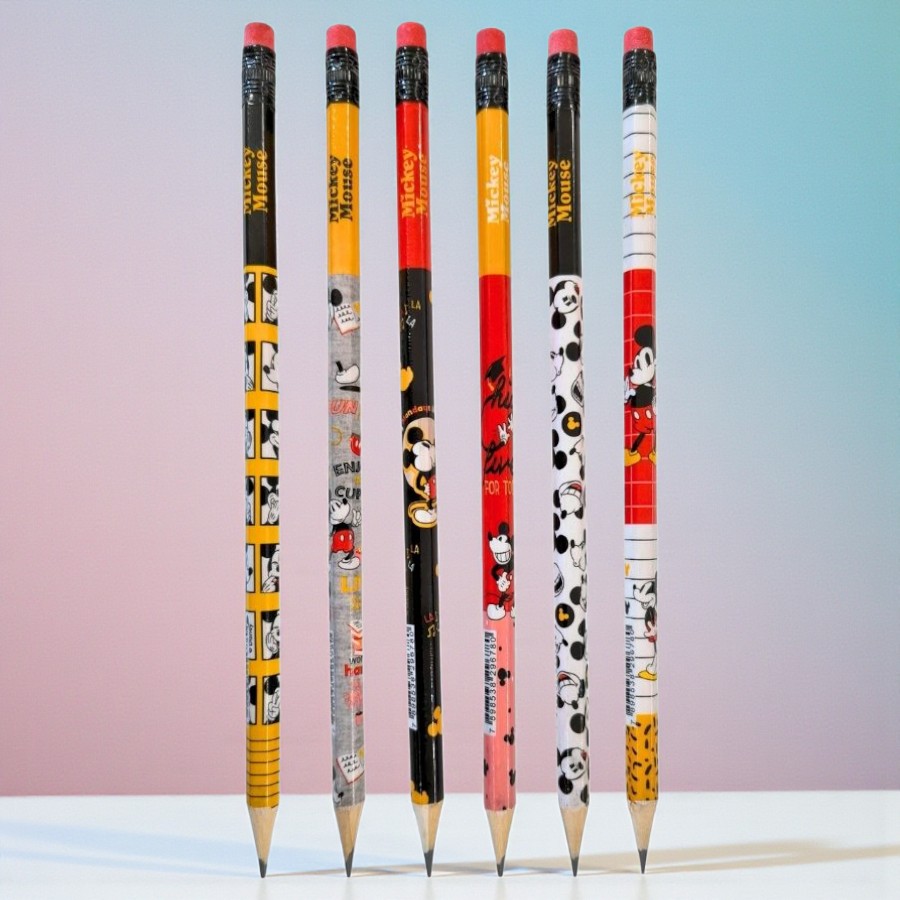 Lápis Mickey Mouse - Grafite HB - Sortido Minnie Mouse Disney é uma opção prática e encantadora para a rotina escolar e atividades de escrita. O lápis grafite HB preto é indicado para anotações, exercícios e uso diário, oferecendo escrita macia e agradável. Possui borrachinha no topo, facilitando correções rápidas durante as tarefas. O modelo conta com 6 estampas diferentes, sendo enviada 1 unidade com estampa sortida, conforme disponibilidade de estoque, sem possibilidade de escolha, o que torna cada lápis uma surpresa divertida e colecionável. Ideal para uso escolar, organização do estojo e composições criativas em Disney Original.