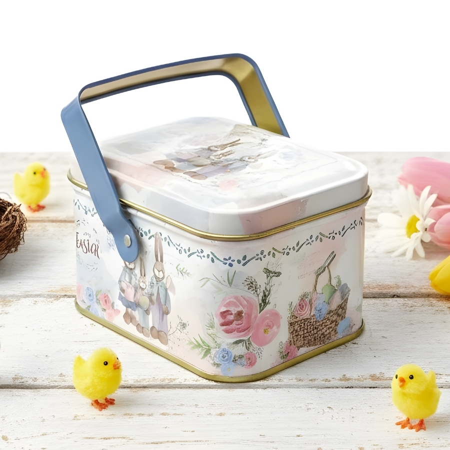 A Lata de Metal Retangular de Páscoa com estampa de família de coelhinhos é uma peça charmosa e versátil para decorar, organizar ou presentear durante a época pascal. Seu visual lúdico e rico em detalhes traz um clima acolhedor e delicado, perfeito para compor mesas temáticas, cestas e ambientes decorados.