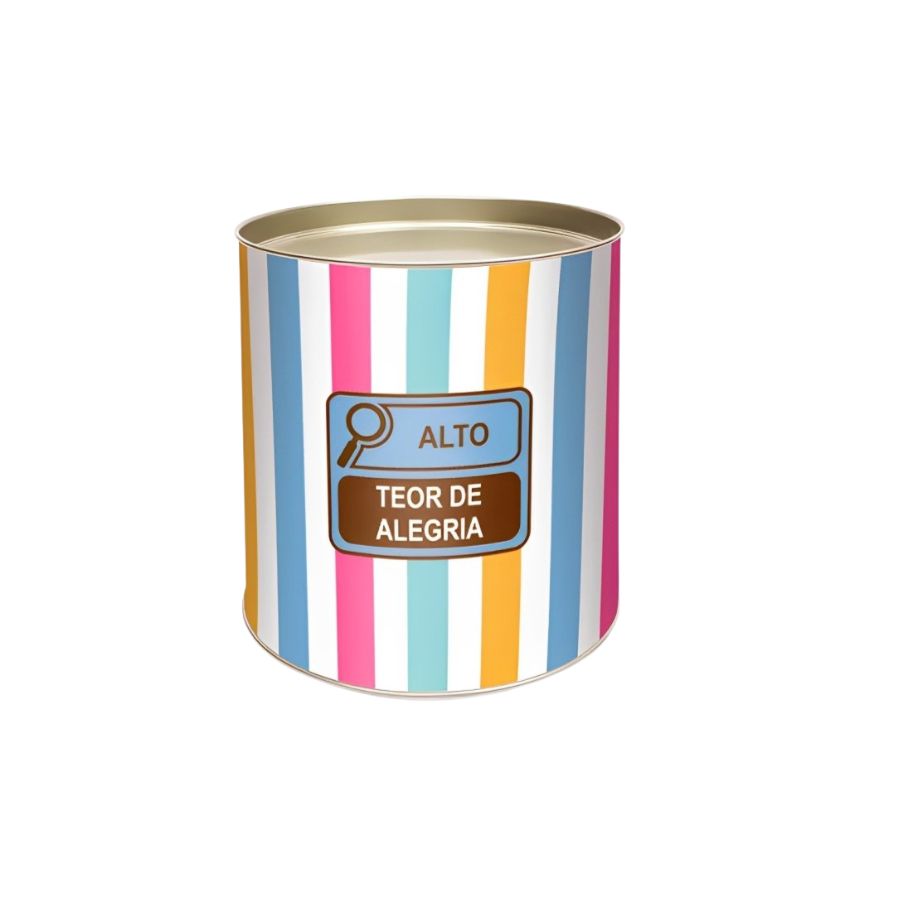 A lata para doces rígida com o tema Alto Teor de Alegria é perfeita para embalar seus doces com charme e segurança. Com um design alegre, ela garante que suas guloseimas fiquem bem protegidas e apresentadas de forma encantadora, ideal para presentear em qualquer ocasião.