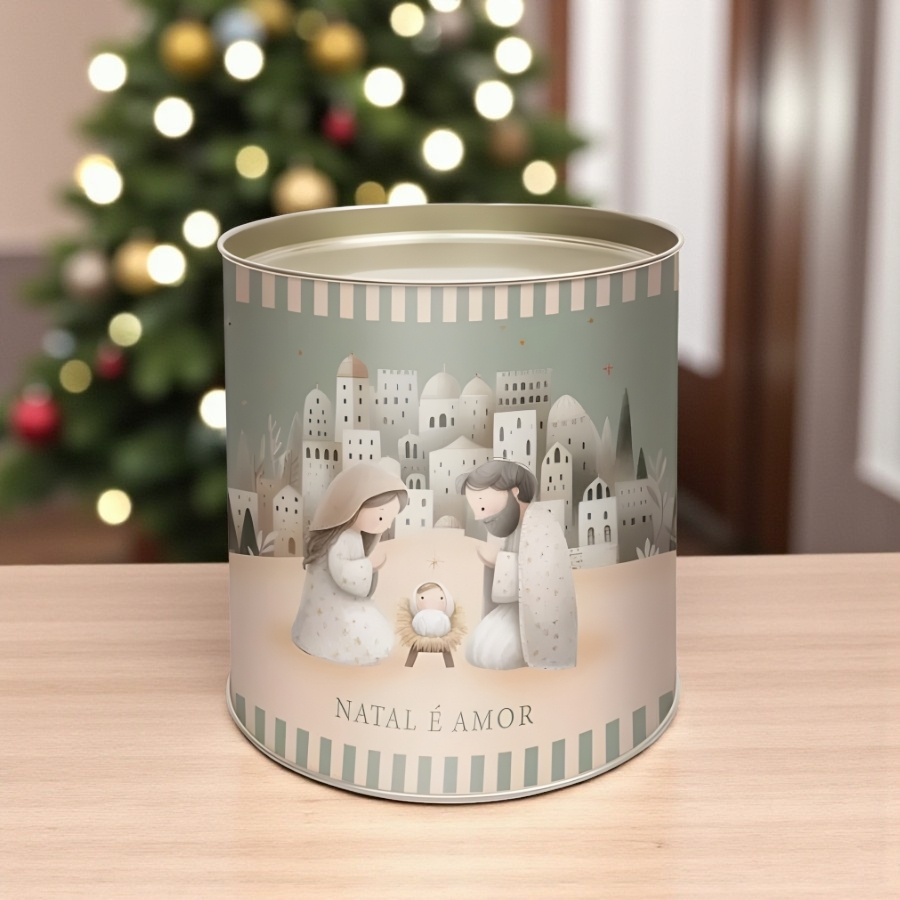 Encante neste Natal com a Lata Rígida para Panetone Belém Estrelas, uma embalagem sofisticada que une beleza e tradição. Com design inspirado na atmosfera natalina e detalhes de estrelas douradas, ela é perfeita para panetones de até 500g, proporcionando uma apresentação elegante e especial para seus presentes de fim de ano.