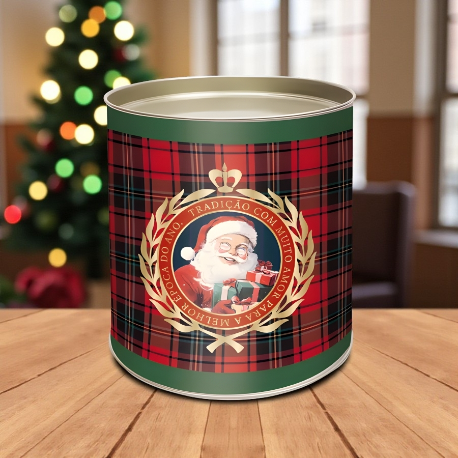 Além de prática e durável, a Lata Tradição é uma excelente opção para presentear familiares, amigos ou clientes. Seu design temático transmite o clima festivo do Natal, agregando valor ao presente e destacando-se como uma embalagem refinada e reutilizável.