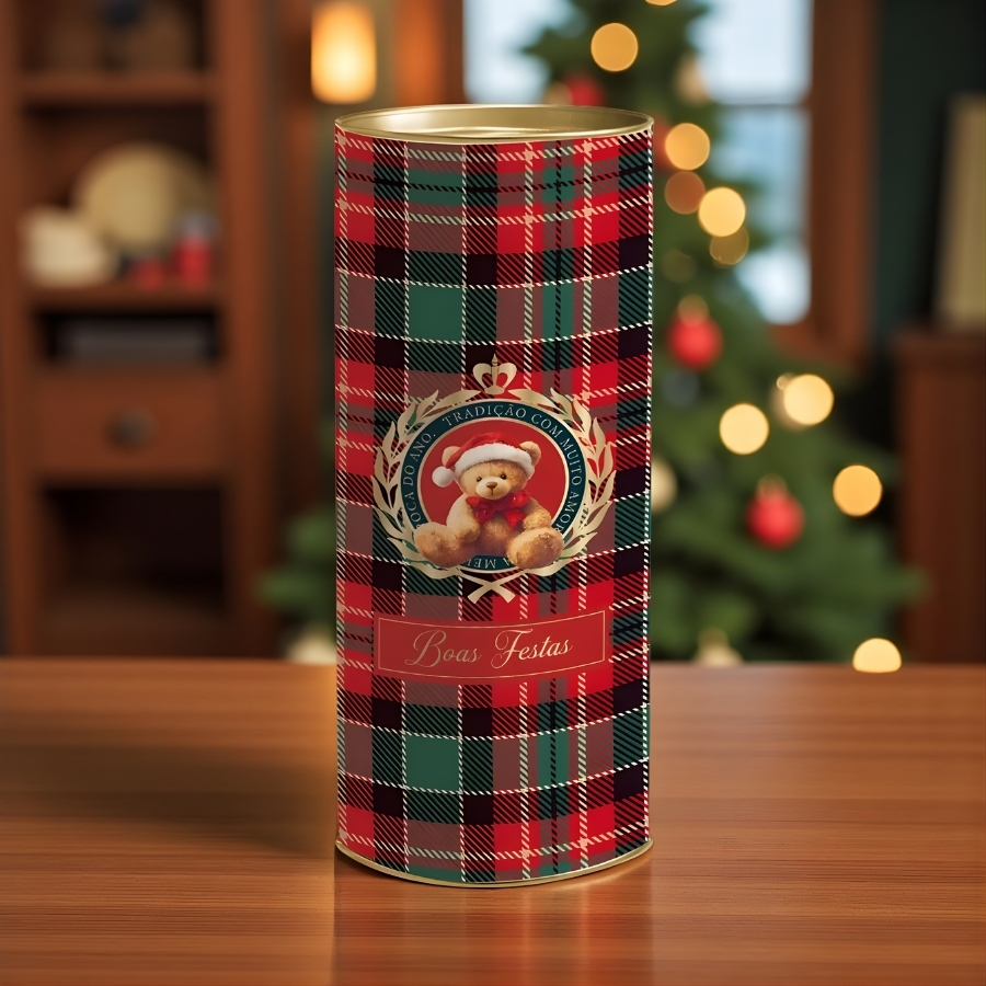 A Lata Rígida para Presente Magia Infinita Ursinho no tamanho G (10,5x27x10,5cm) é confeccionada em material metálico de alta qualidade, com acabamento refinado e temática natalina exclusiva. Pode ser reutilizada como item decorativo ou organizador, agregando estilo e encanto à decoração de fim de ano.