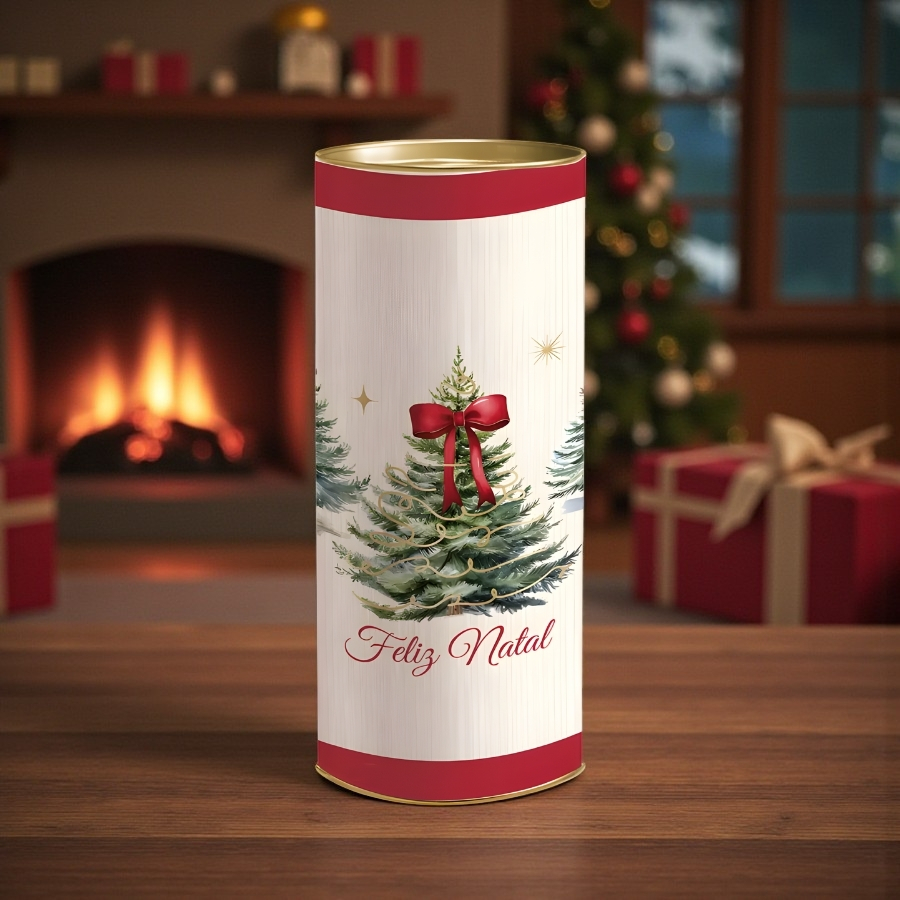Ideal para quem busca uma embalagem refinada para panetones, doces, biscoitos ou lembranças de Natal, esta lata oferece um visual sofisticado e versátil. O tamanho P (9,5x20,5x9,5cm) é perfeito para presentes compactos, permitindo criar composições natalinas encantadoras e bem-acabadas. Seja para uso pessoal, empresarial ou comercial, esta lata agrega charme e profissionalismo a qualquer ocasião.
