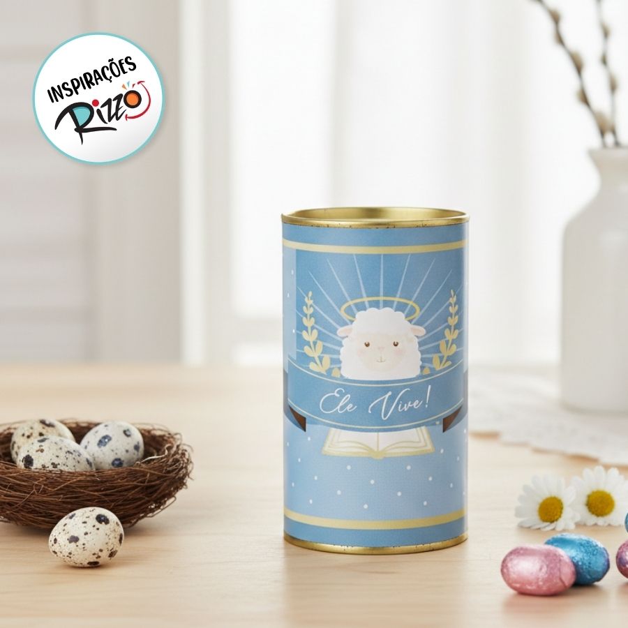 A Lata Rígida para Ovos de 350g modelo “Ele Vive!” é uma embalagem temática e resistente, ideal para valorizar ovos de chocolate e presentes especiais. Sua estrutura rígida protege o conteúdo durante o transporte, enquanto a arte com a mensagem transmite significado e celebração, perfeita para datas comemorativas.