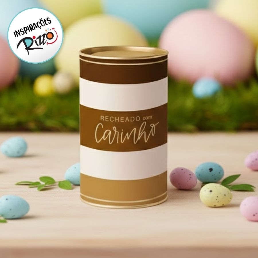 Fabricada em material rígido e resistente, essa lata oferece segurança ao ovo e acabamento premium, sendo ideal para confeiteiros, lojas, artesãos e presentes personalizados de Páscoa. Além disso, é reutilizável, podendo ser usada como item decorativo ou organizador.