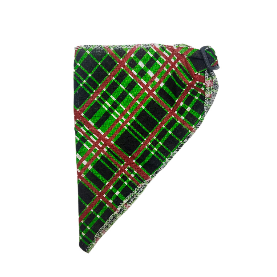 Lenço caipira de tamanho M na cor preto, verde e vermelho com detalhes xadrez. (Possui costura sortida nas cores branco e amarelo)