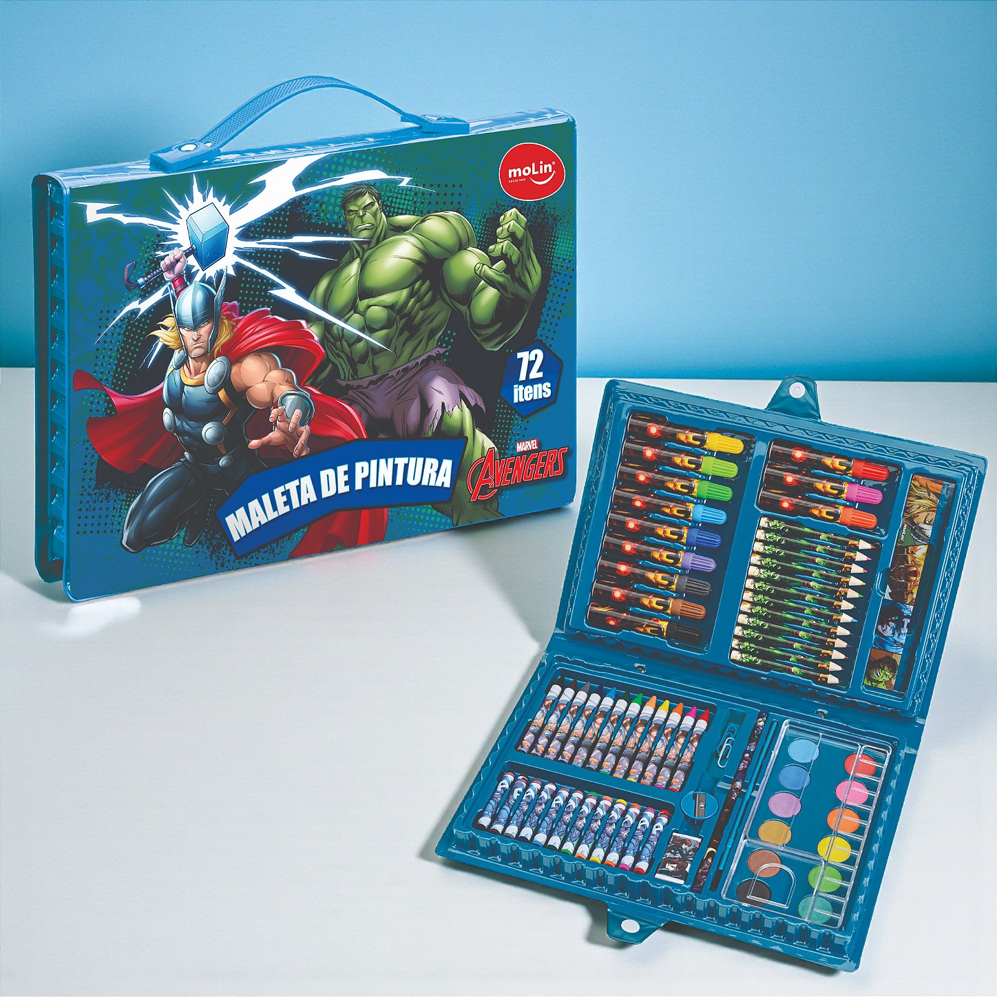 Kit de pintura em formato de maleta com 72 itens, inspirado em Vingadores Marvel