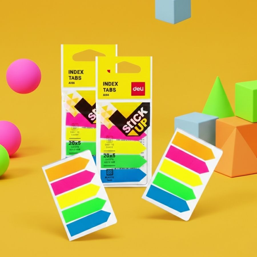 Com tamanho de 4,5cm, o marcador oferece excelente visibilidade sem atrapalhar a leitura. O conjunto conta com 24 pacotinhos no total, cada um com 5 cores sortidas, sendo 20 marcadores de cada cor, garantindo ótimo rendimento e organização eficiente por categorias, assuntos ou prioridades. O adesivo proporciona boa fixação e remoção fácil, sem danificar livros, cadernos, agendas ou documentos.