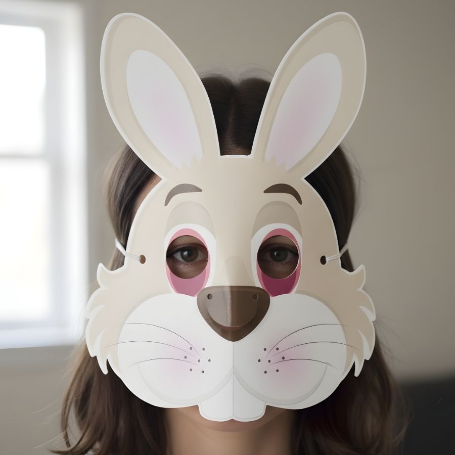 A máscara de coelho possui dimensões aproximadas de 27x19cm e acabamento na cor bege, oferecendo um visual neutro que se adapta a diferentes propostas decorativas e educativas. É indicada para uso em festas de Páscoa, eventos escolares, atividades recreativas e apresentações infantis, funcionando como acessório temático e elemento de apoio em ações pedagógicas.