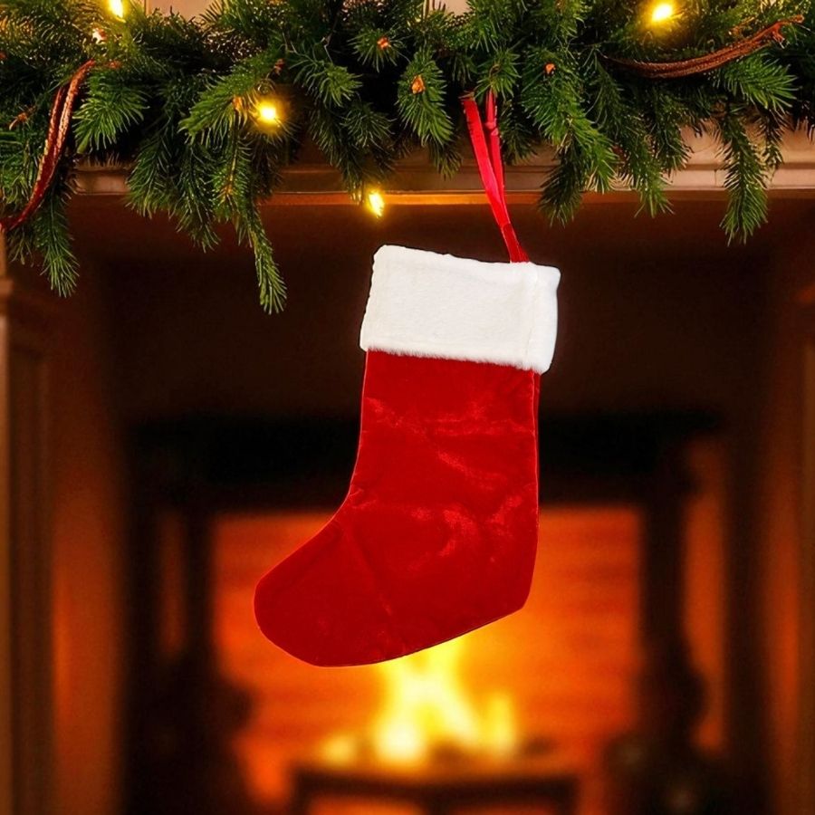 A Meia de Natal Decorativa Vermelha é espaçosa, charmosa e tradicional, ideal para decorar, presentear e criar composições natalinas cheias de magia e alegria.