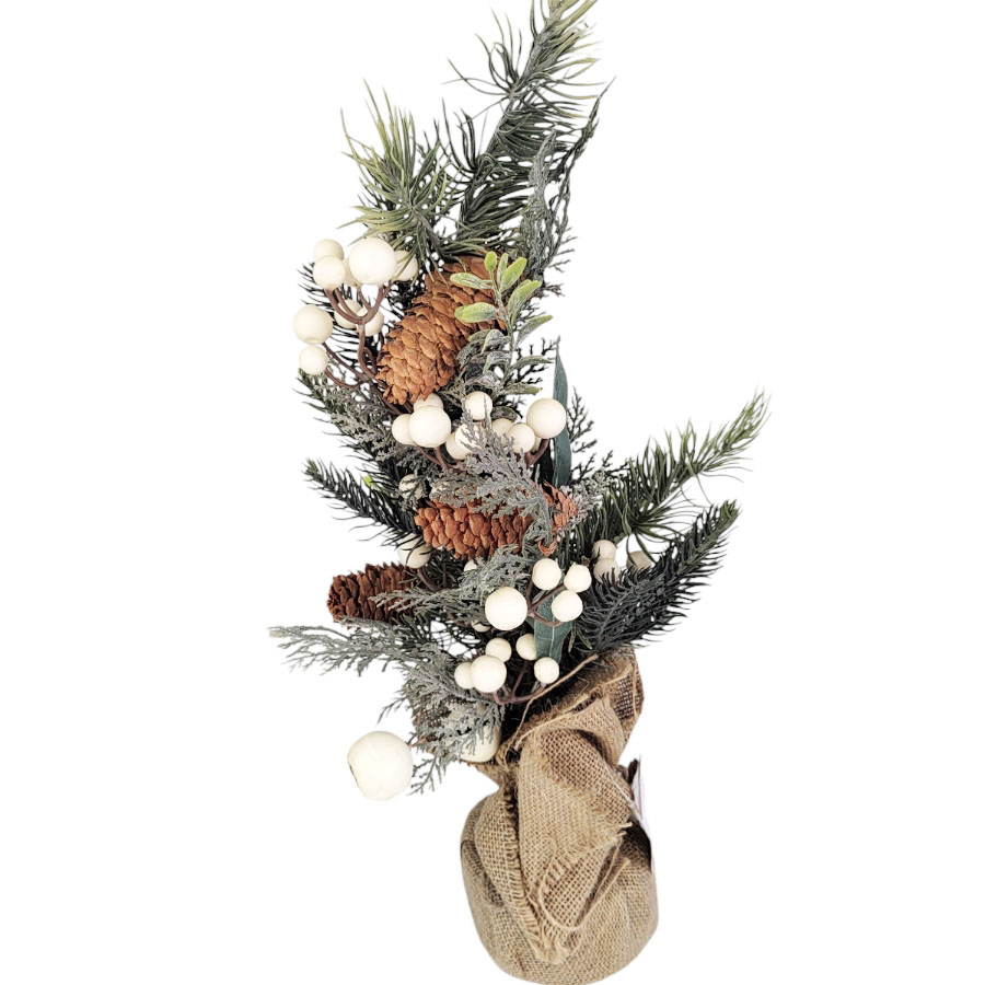 Mini Arvore de natal com pinhas e frutinhas brancas de enfeite