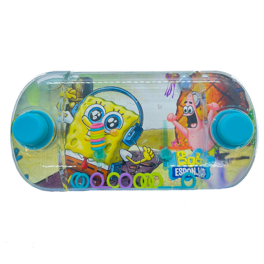Jogo mão de acertar Argolas, sendo ele com desenho sortido tema Bob Esponja, com botão emborrachado Azul.