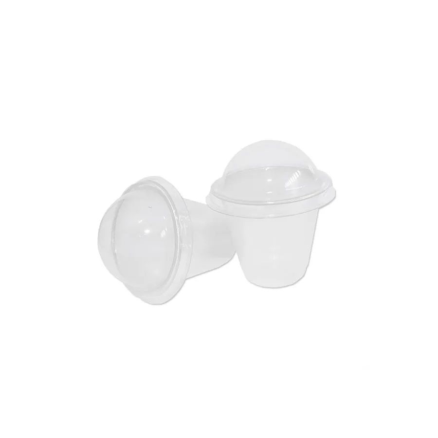 Pequeno Copo de plastico transparente com tampa tipo bolha