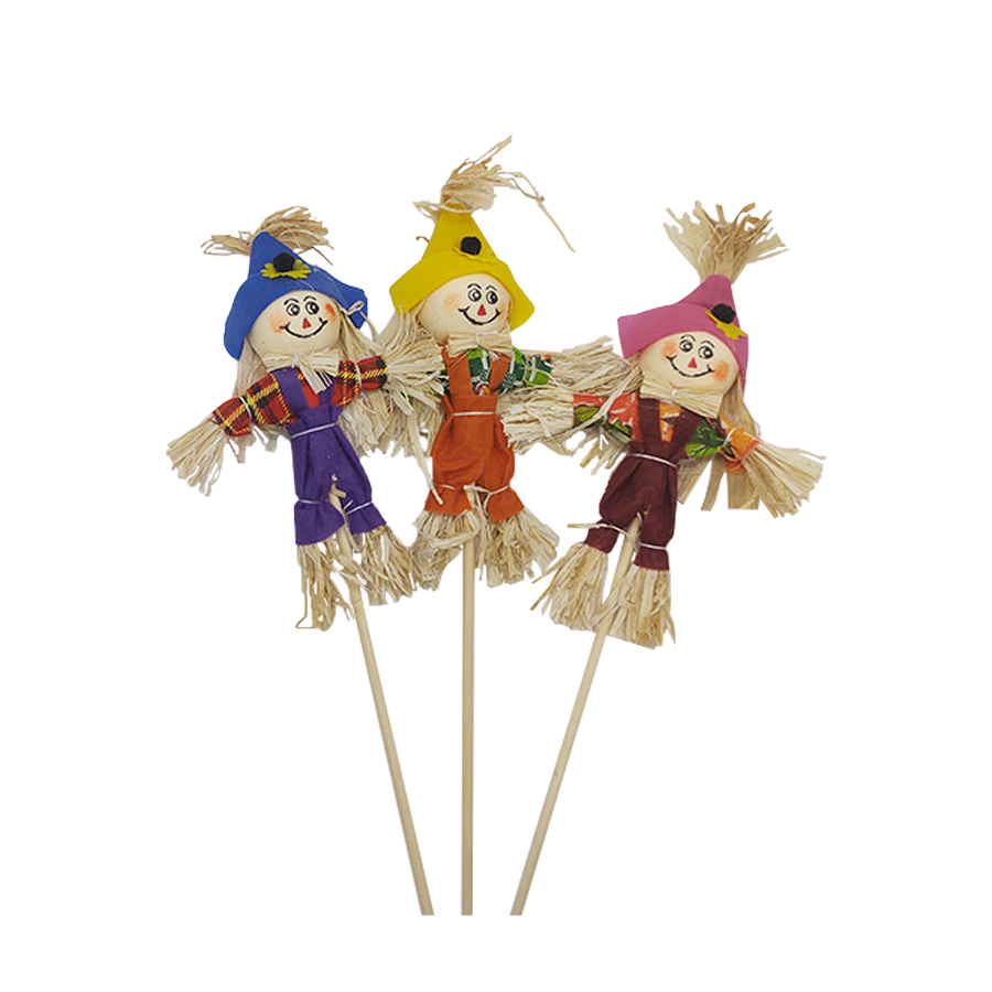 Possui 1 espantalho podendo variar as cores da roupa sendo verde, amarelo, marrom, roxo, laranja e etc. NÃO SERÁ POSSÍVEL ESCOLHER A COR
